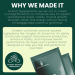 For optimal results, we recommend pairing VitaMan with chelated magnesium and boron supplements. These complementary nutrients help enhance the effectiveness of our formula, further supporting balanced testosterone levels and overall performance.