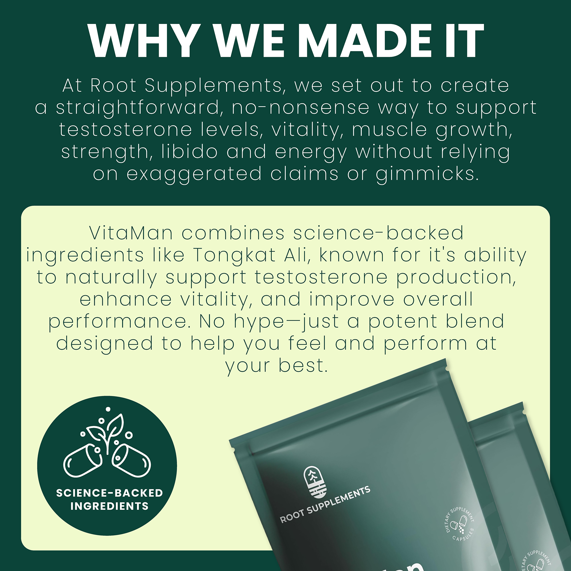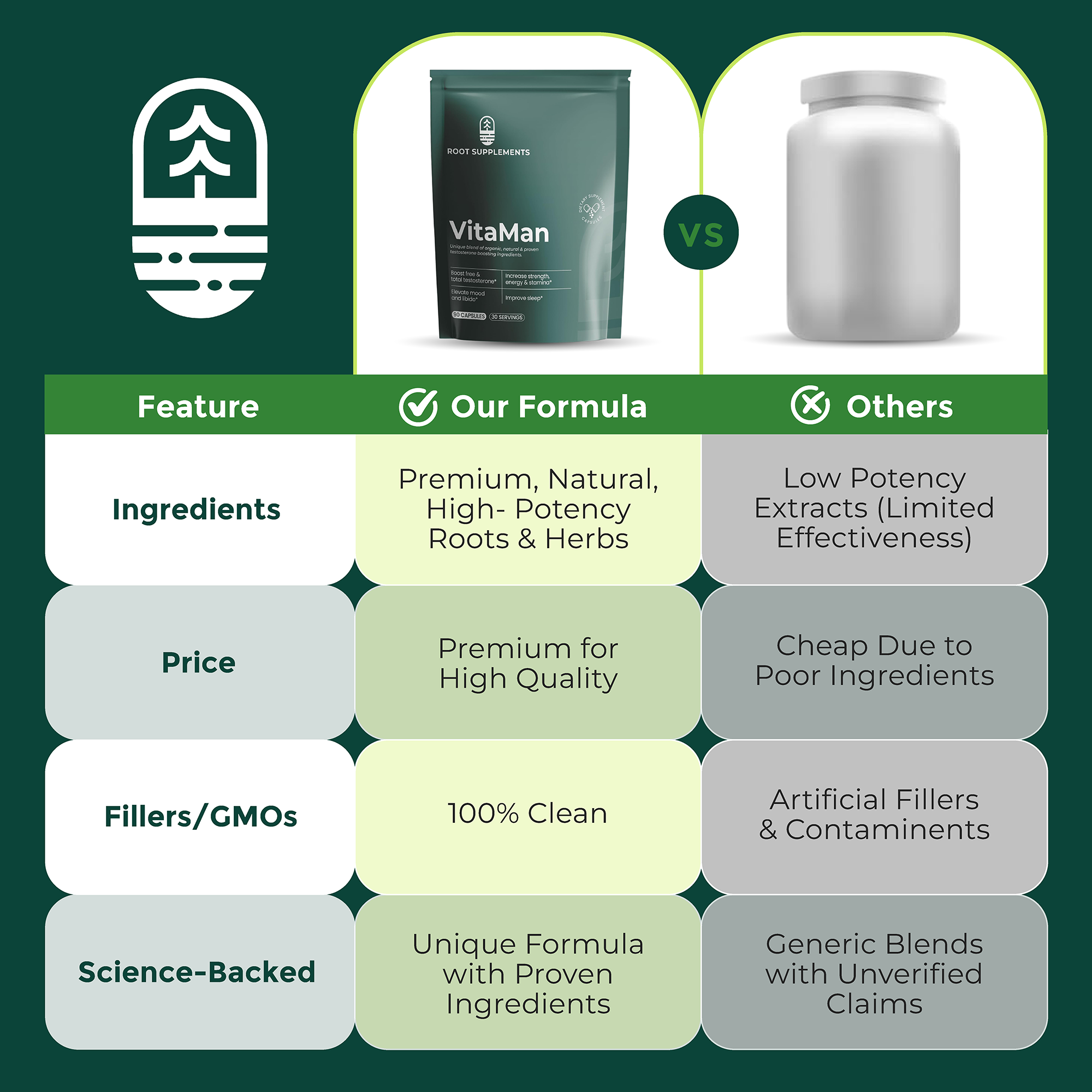 VitaMan is crafted with three whole, natural, and organic ingredients. Unlike cheap extracts, we use full, high-quality ingredients known for superior bioavailability.
