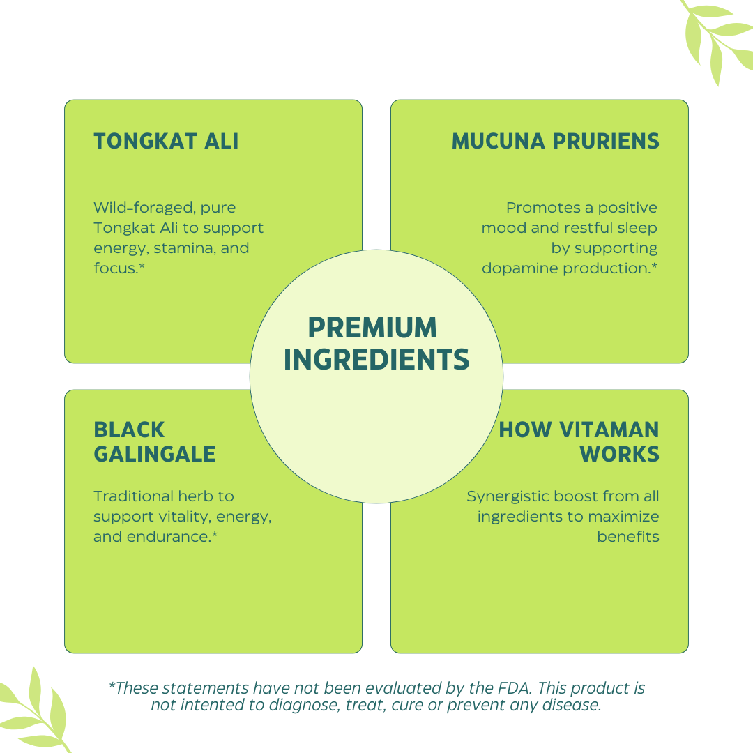 VitaMan works through a unique combination of natural ingredients that support your body’s own testosterone production. Here’s how: